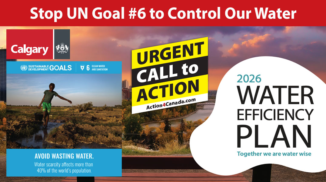 Calgary City Council is coming for your water!  The restrictions of 2024 were just the beginning. They have proposed a Water Efficiency Plan which will be put to a vote in council on April 28, 2026. This is an incremental, subversive, step in implementing Goal #6 of the UN’s 17 Sustainable Development Goals (SDGs). Learn more about SDG’s HERE. Please take action in sending the letter regardless of your province as this is the ‘2030 Agenda’ Canadawide!